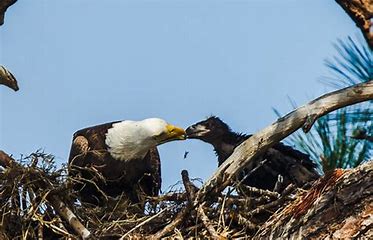I’m still watching the eaglet in Alaska, and it’s 55 days old today. It has grown incredibly since I started watching, and looks very much like an adult. It won’t have the white feathers on its head until it is at least five-years old, when it is considered mature. I’m thinking it’s a female because it’s so big (females are about 30% larger than males), but without a DNA test there’s no telling just yet. It’s walking much better, and standing, and flapping its wings (wingercising, it’s called). Today, mama bird hopped up on a branch, and the eaglet was absolutely fascinated with that move.